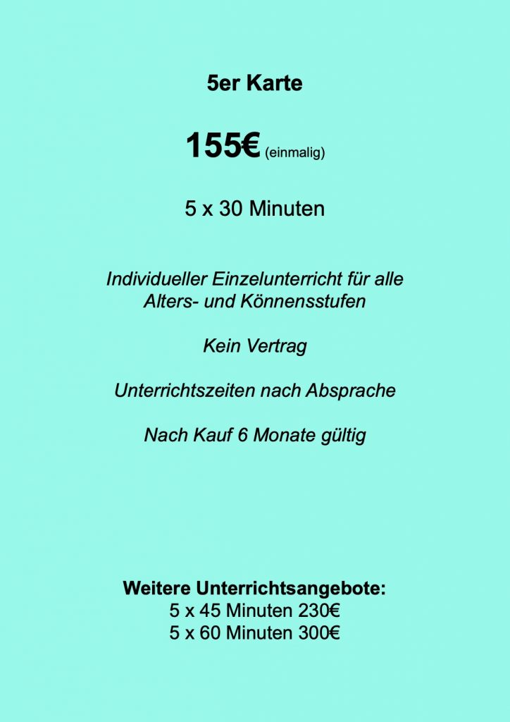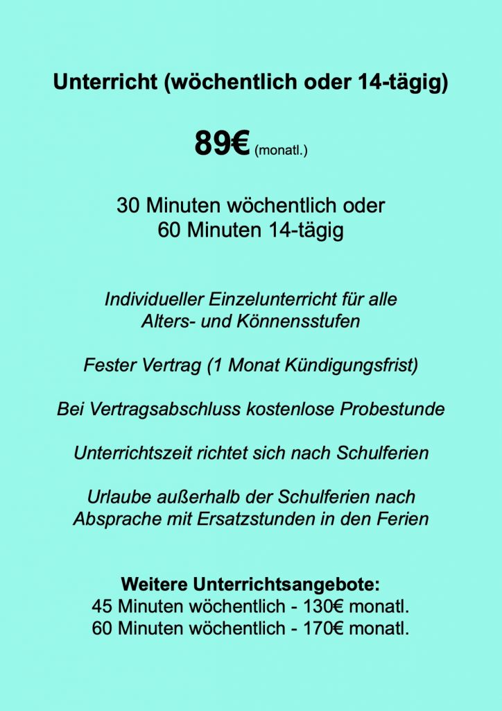 Wenn du Interesse hast, freue ich mich auf eine Mail von dir. Wir können uns dann gerne telefonisch über deine individuellen Interessen und Ansprüche austauschen und eine Probestunde vereinbaren. Egal ob Anfänger*in oder Fortgeschrittene*r – ich gehe individuell auf deine Ziele ein und begleite dich Schritt für Schritt auf deinem musikalischen Weg.